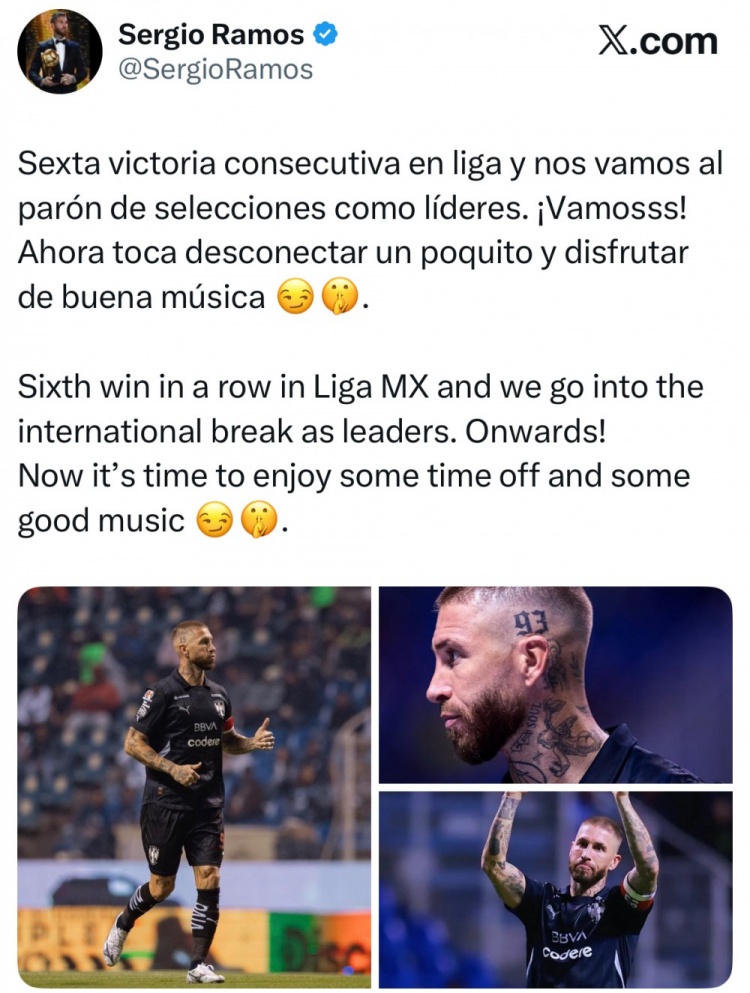 你的位置:意甲直播 > 德甲球队 > 助蒙特雷联赛6连胜&榜首,拉莫斯社媒:是技能削弱削弱,听听音乐