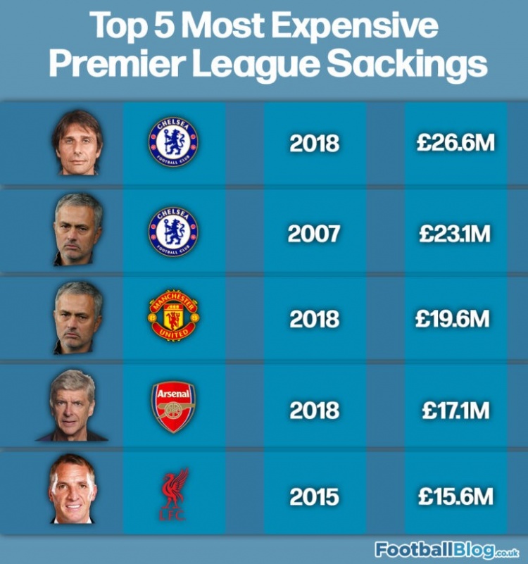 在整个解雇用度来源1000万英镑的18个案例中,有8个由切尔西制造,这进一步突显了他们在教会席变动上的庞大干预。