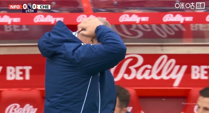 比赛第20分钟,切尔西后防乱成一团,吉布斯-怀特1分钟内错失2次良机。澳波在场边越过沮丧。