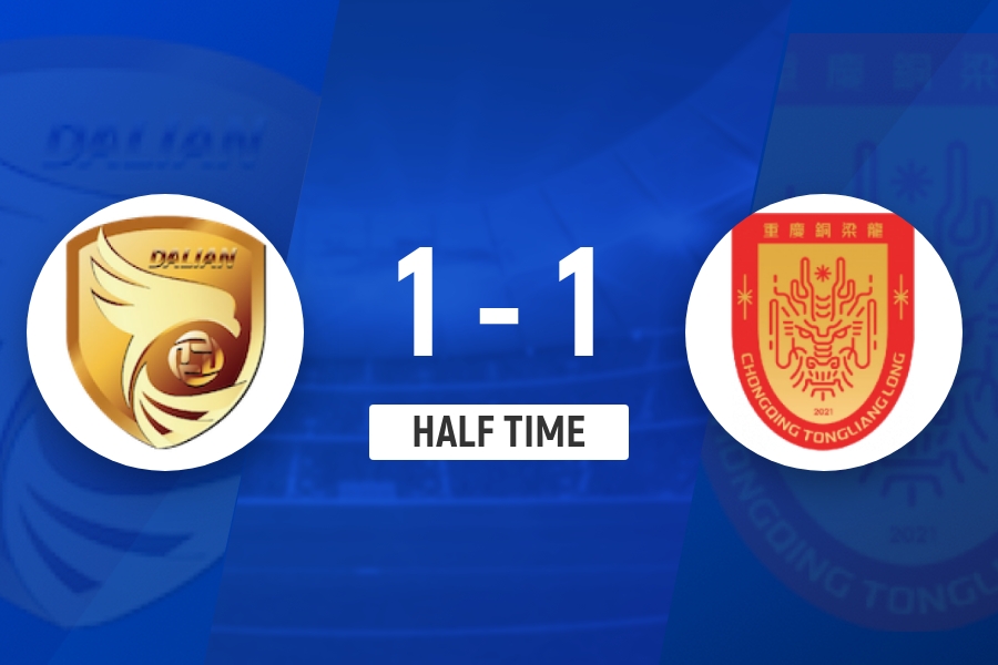 上半场比赛铁心,大连鲲城1-1重庆铜梁龙。