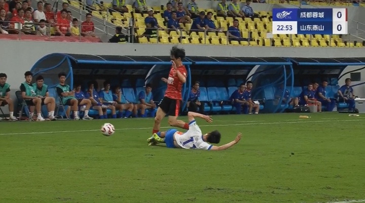 08月02日讯 中超第19轮,成王人蓉城vs山东泰山。比赛第22分钟,刘洋对杨明洋铲球犯规,被出示黄牌。