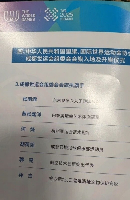 8月7日讯 成齐世运会今晚开幕。据据先容手册,成齐蓉城球员胡荷韬将与张雨霏、黄张嘉洋、何烽、郭亮、孙杰担任组委会会旗抓旗头。