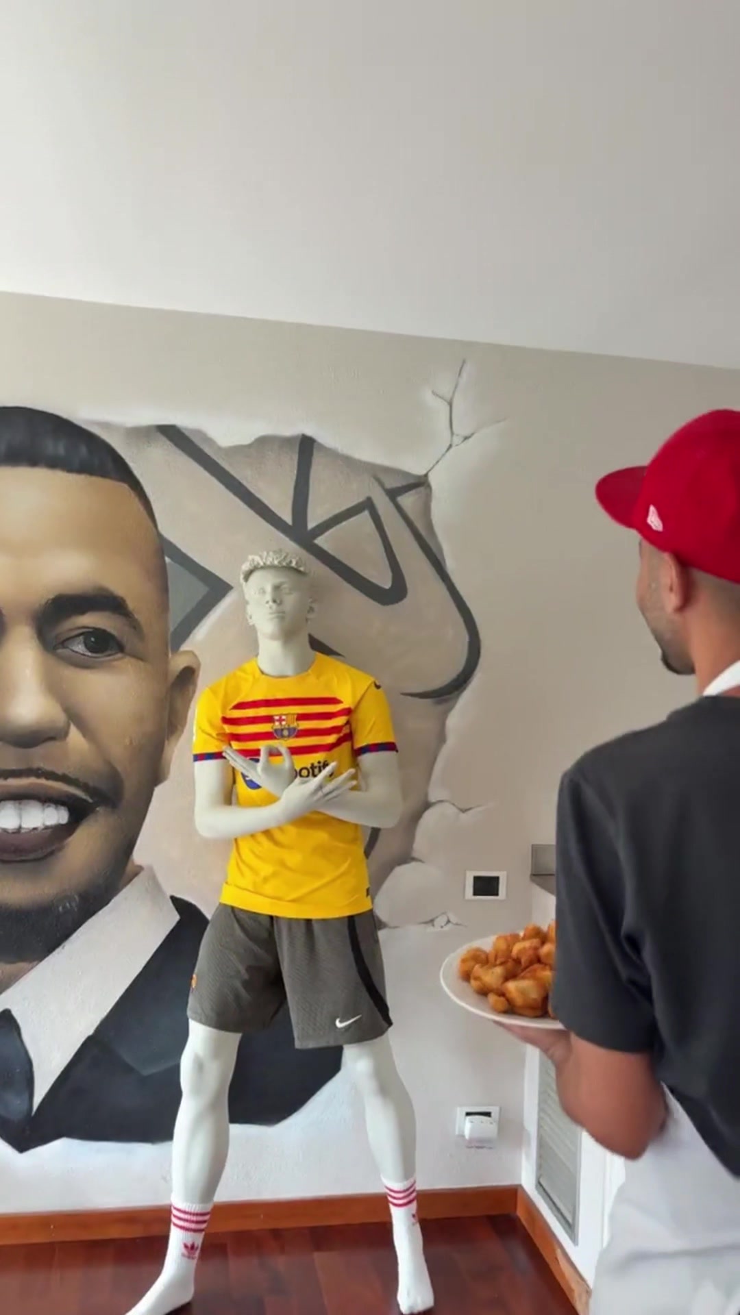 在视频的临了,镜头转到房间的一面墙,何处摆着一个亚马尔标识性庆祝看成的模子,亚马尔的父亲拿着鸡块说:“嘿,拉明,你还好吗?我至极爱你,孩子,爸爸爱你。我给你准备了惊喜,小可儿。等会儿给你戴上,咱就给大伙儿瞧瞧。我爱你。”