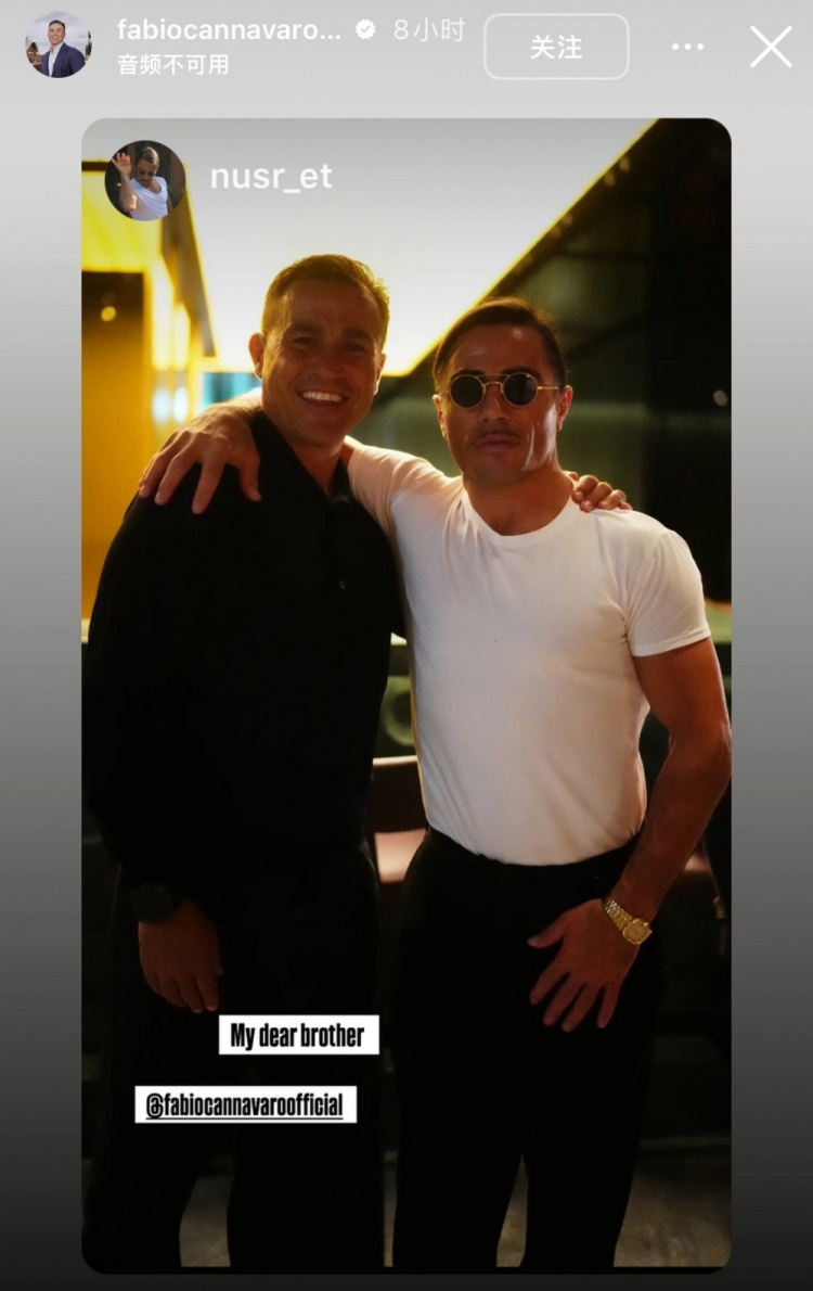 北京手艺今天凌晨,卡纳瓦罗更新社媒,转发了网红“撒盐哥”社媒发出的两东谈主合照,前者称号卡纳瓦罗为“好兄弟”。像片中卡纳瓦罗依旧展现出标记性的笑颜,看上去情愫很好。