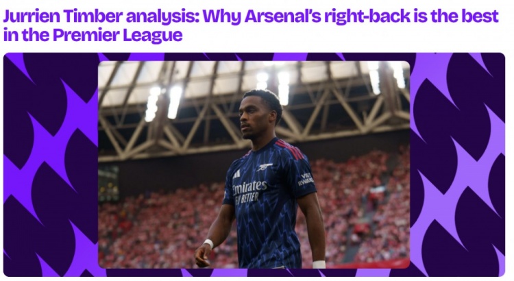 10月8日讯 OPTA撰文列出数据,在新赛季开局七轮事后,阿森纳后卫廷伯凭借其攻防两头的总揽级融会,已成为英超最好右后卫的有劲竞争者,甚而不错说等于英超该位置当之无愧的第一东谈主。