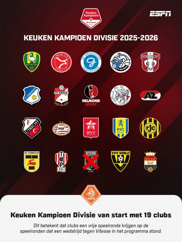 由于欠债严重,维特斯的处事牌照在此前被湮灭,抑止插足处事联赛,新赛季荷乙参赛球队数目从20支减至19支,中国先锋张玉宁曾在此着力。