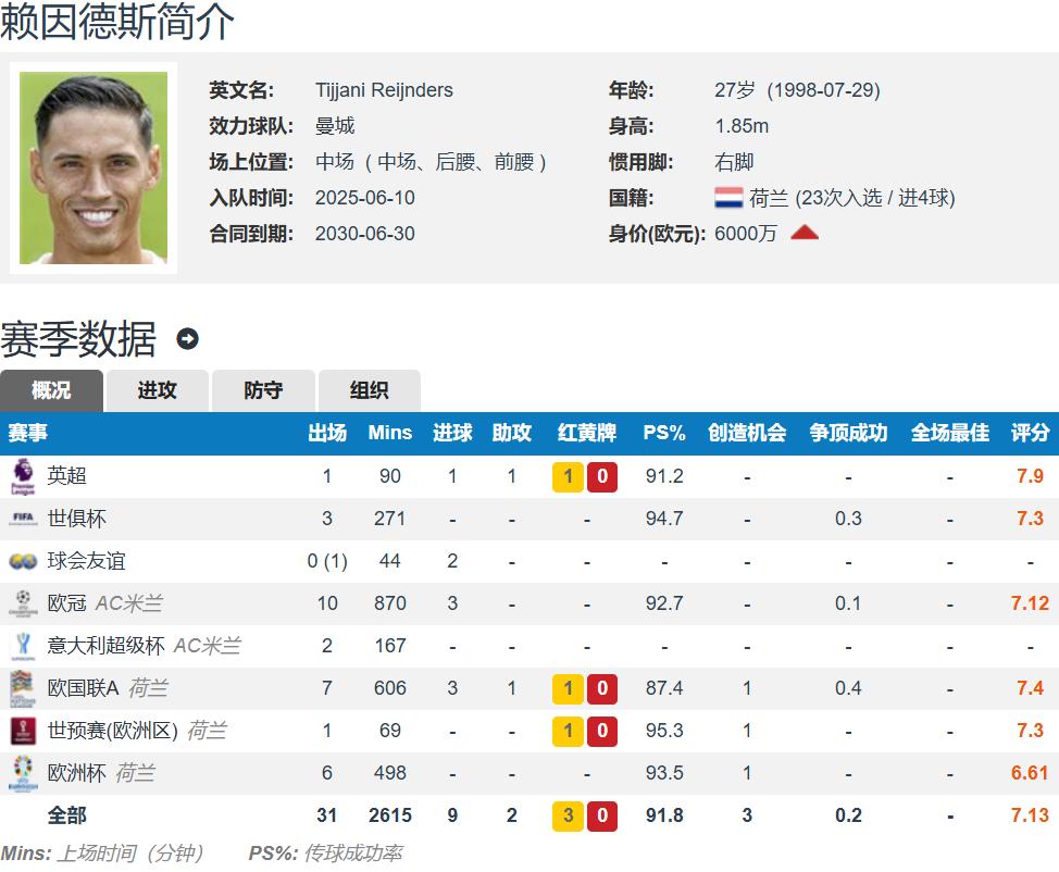 赖因德斯这位27岁的荷兰中场,体能尽头充沛,还是一位铁东说念主,英超首秀除了孝顺精彩传射除外,他用我方最为擅长的阴私才调不仅串联了曼城热切,也栽种了曼城顽抗的硬度和宽度。德布劳内离队,罗德里伤了又伤,可以说基本上难回巅峰了,京多安又老了一岁,曼城尽头需要赖因德斯这么的即战力中场来栽种曼城的中场实力,此次曼城算是捡到宝了。