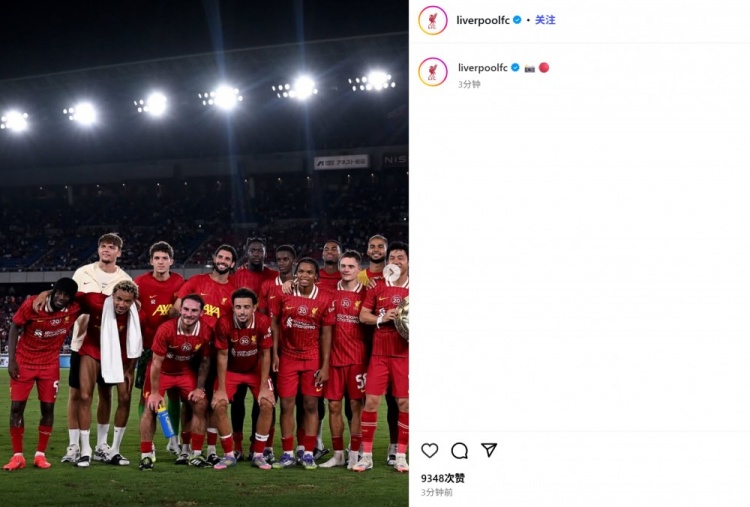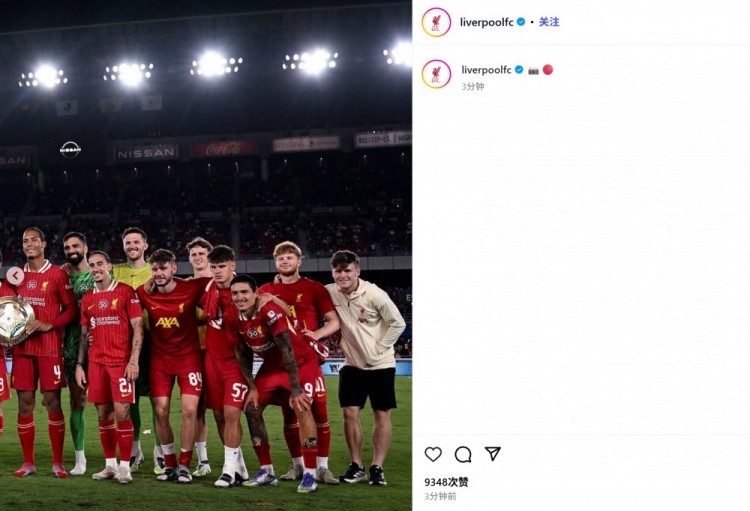而利物浦官方社媒也在赛后晒出了全队合照,远藤航和队长范迪克共同手捧奖杯站在C位。