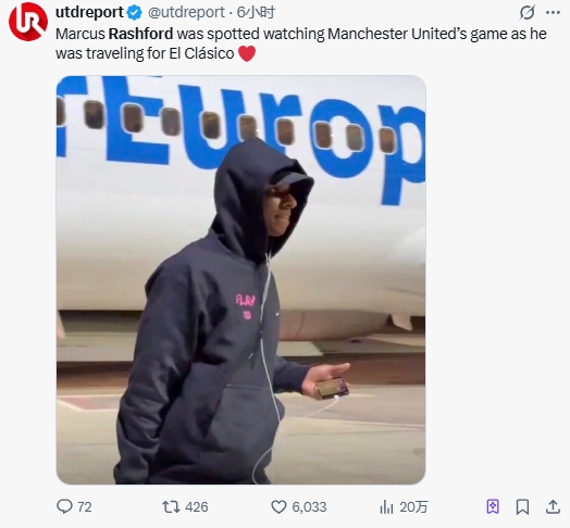 10月26日讯 今晚,拉什福德将迎来他的第一次西班牙国度德比,昨晚他和队友落地马德里,鄙人飞机时被发现正在用手机看球。