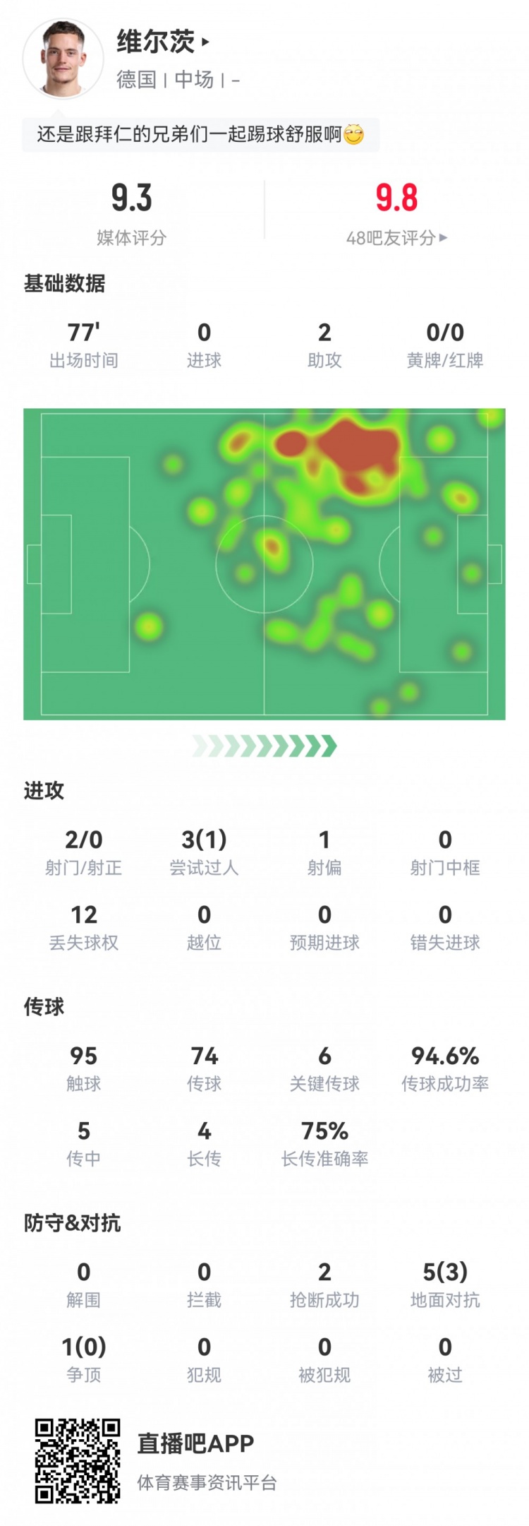 你的位置:意甲直播 > 中超直播 > 老到的配方!维尔茨数据:6要害传球2助攻传球生效劳94.6%评分9.3