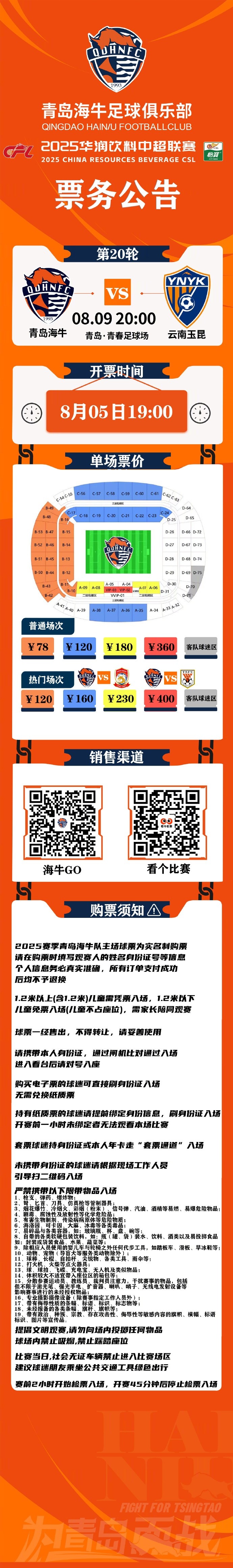 2025华润饮料中超联赛第20轮青岛海牛vs云南玉昆票务公告