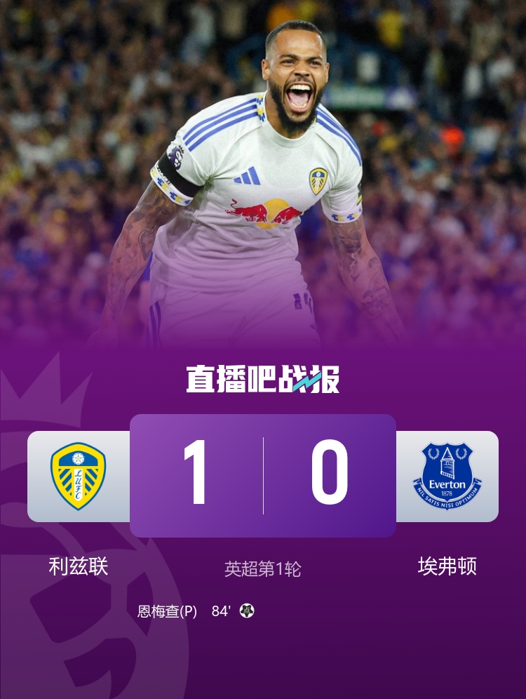 8月19日讯 英超首轮比赛,利兹联主场1-0打败埃弗顿。