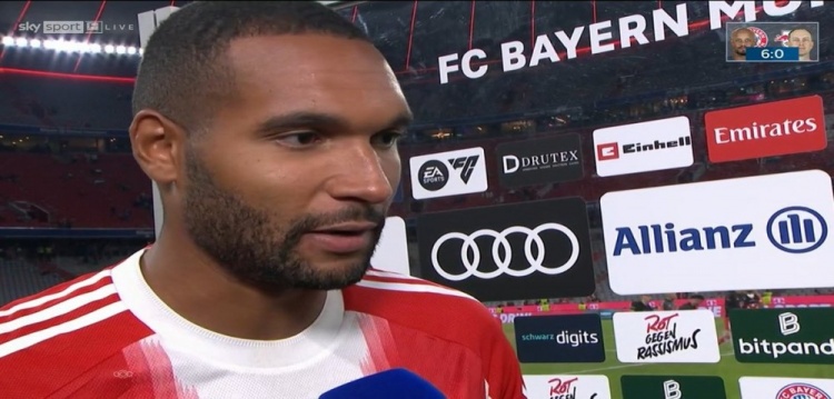 8月23日讯 德甲首轮比赛,拜仁主场6-0打败莱比锡,拜仁后卫若纳坦-塔赛后领受了媒体的采访。