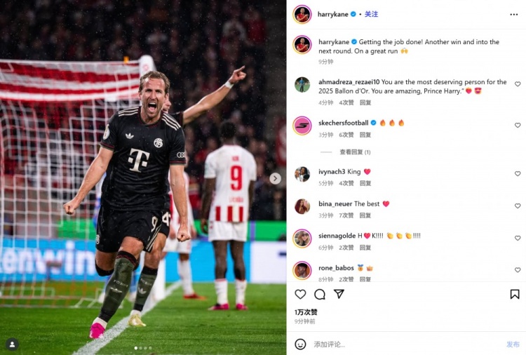 10月30日讯 拜仁在本轮德国杯4-1逆转科隆,凯恩头顶脚踢梅开二度。