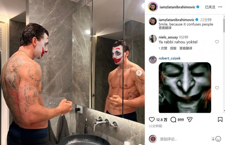 万圣节之际,伊布装璜成着名邪派变装“怯夫”,他在酬酢媒体上晒出像片,并援用台词:“笑吧,因为这会令众东说念主困惑。”