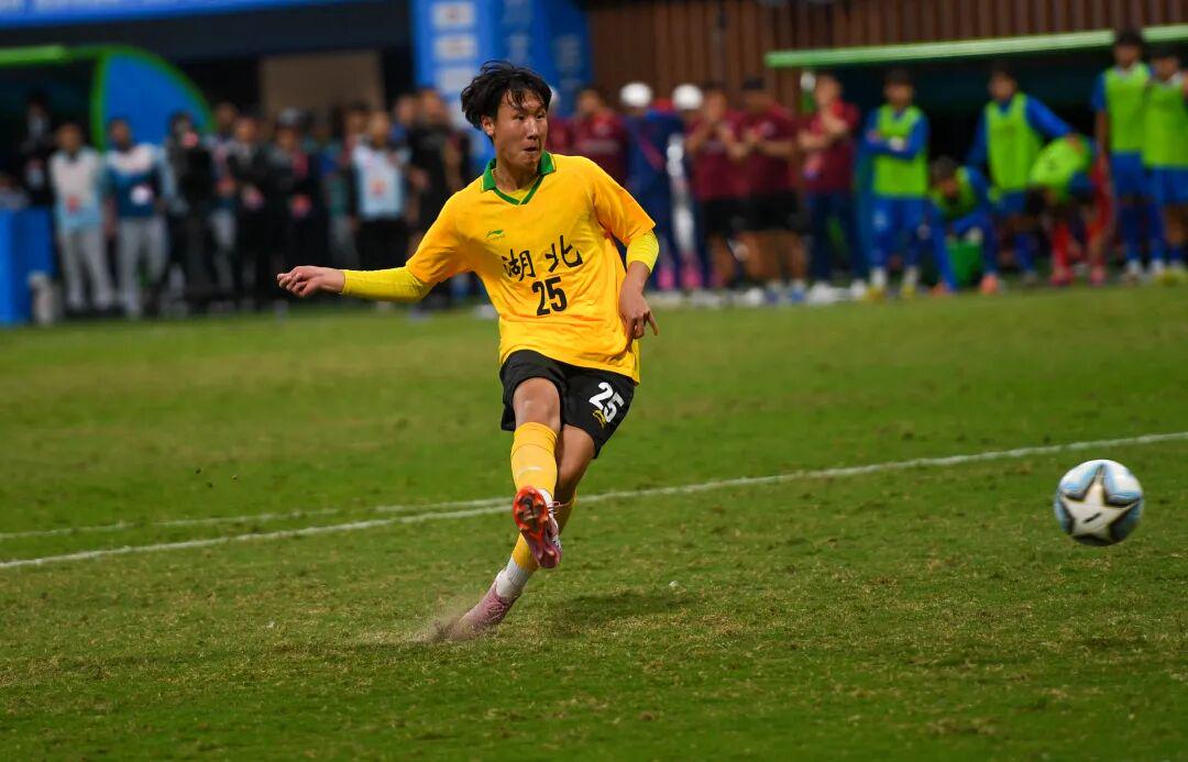 11月12日晚,在深圳进行的第十五届全运会男人足球名堂U20组决赛中,湖北队与人广东队在90分钟内战成1比1平,随后在加时赛中,两边均无配置。最终在狂暴的点球大战中,湖北队以5比3驯服敌手,从而以总比分6比4驯服广东队,为湖北男足终明显“零的突破”,第一次站在全运赛场最高领奖台上。至此,在本届全运会男足三个组别(U16、U18、U20)比赛中,湖北代表团勇夺一金一银两枚千里甸甸的奖牌,成为成绩最好的省份。