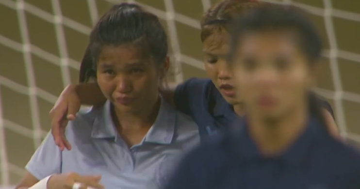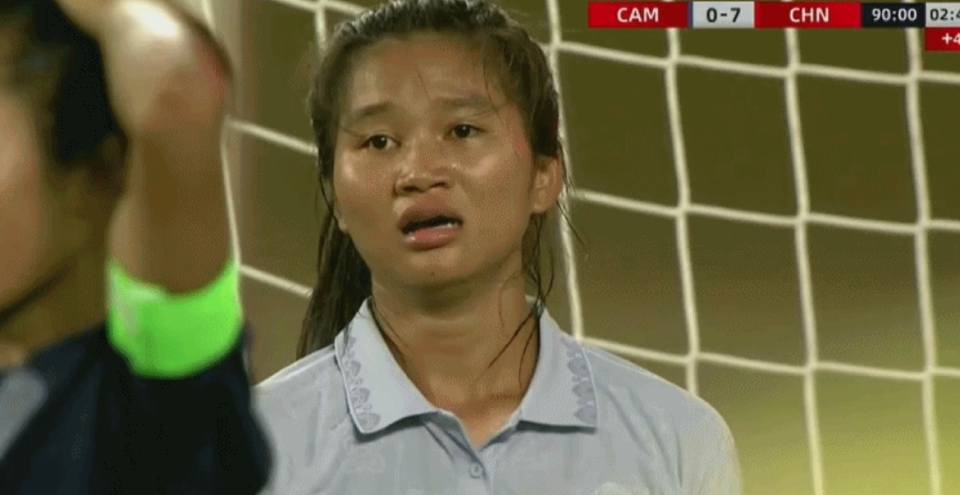 在亚洲杯预选赛小组赛第二轮,U20女足7比0投诚柬埔寨女足。在肖亚飞打入此役第7球之后,柬埔寨门将失声哀哭。