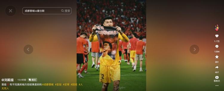 直播吧8月13日讯 蓉城球员刘殿座更新社媒,庆祝球队晋级亚冠精英联赛正赛。